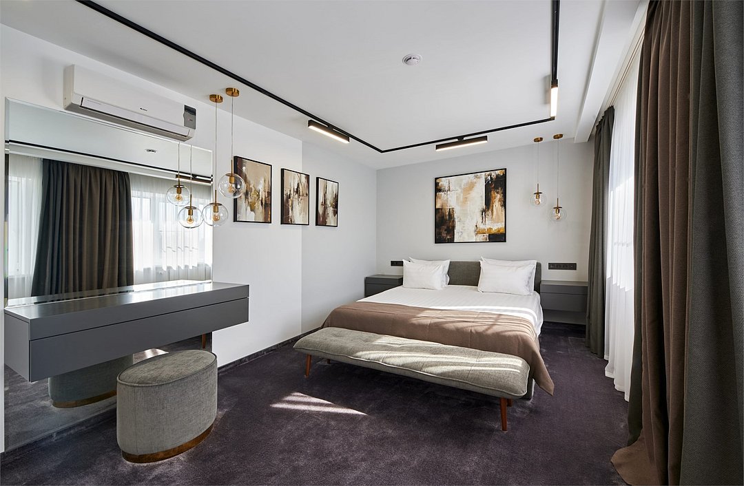 71 номер площадью 31-35 кв. м. идеально подходит для гостей, которые придают особое значение функциональности пространства. Сдержанный элегантный дизайн, уют, четкое зонирование помещения и максимум света при неизменном удобстве создают здесь идеальное пространство для сна и отдыха одного или двух гостей. Номер оснащен функциональным местом для работы и двуспальной широкой кроватью. Все необходимые принадлежности в ванной комнате входят в обязательный комплект для каждого гостя. Мини-бар, беспроводной доступ в Интернет, телефон и спутниковое ТВ прекрасно дополняют созданные условия для отдыха и работы. В зависимости от пожеланий гость может забронировать любой из 2-х типов номеров данной категории: студия или студия для людей с ограниченными возможностями.Услуги и удобства
