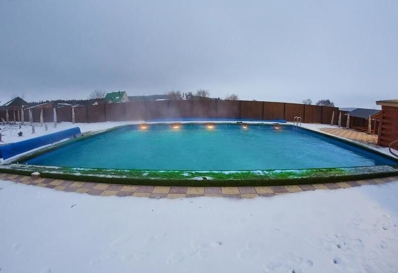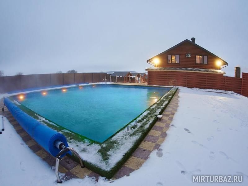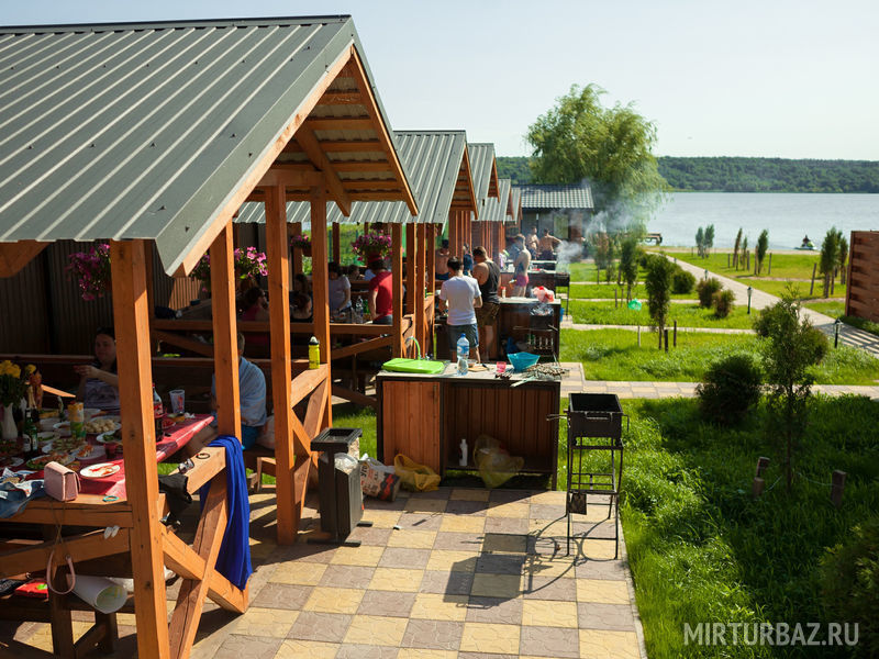 На территории есть русская баня, купель с горячей и холодной водой, бассейн, чистый пляж, уютные беседки.