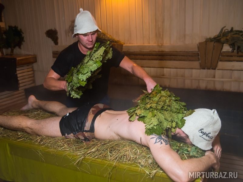Сезонное парение, проходит в один заход с использование пихтовых и можжевеловых веников.Царское парение