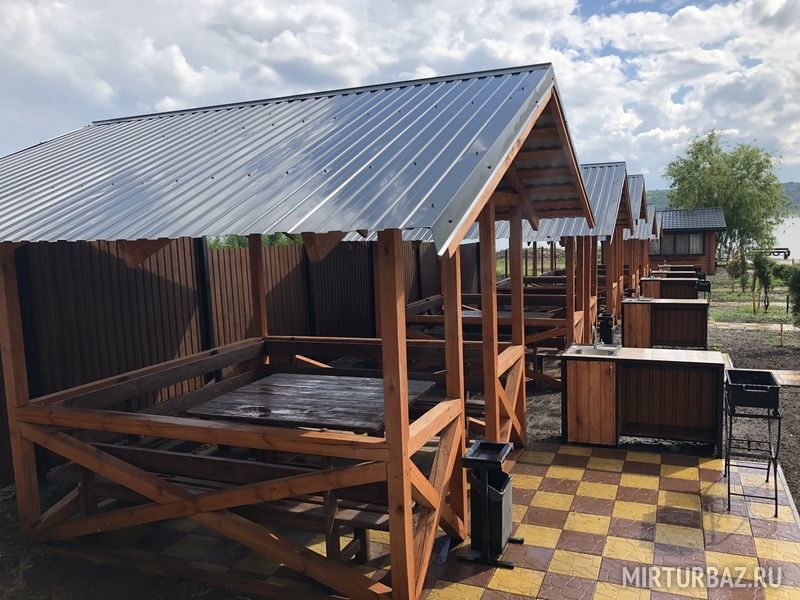 Беседки оборудованы кухней, керамической посудой, столовыми приборами, кухонными принадлежностями, около беседки расположен мангал.