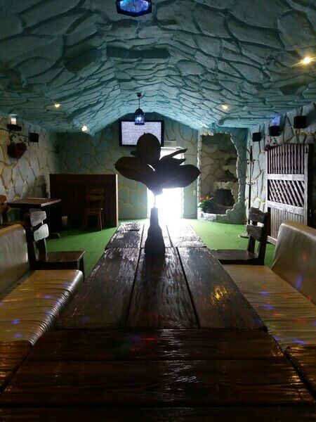 Двухэтажный дом, две спальные комнаты, два дополнительных дивана, бильярд. Финская сауна с эффектом русской бани, купель, обливное холодное ведро. Музыкальный центр, ТВ, микроволновая печь, холодильник, чайник, мангальная зона.