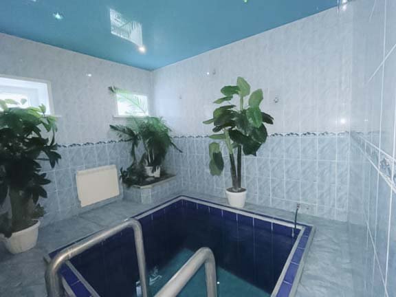 Тип бассейна: крытый бассейнНебольшой бассейн для водных процедур расположен в сауне, которая находится в доме №9.