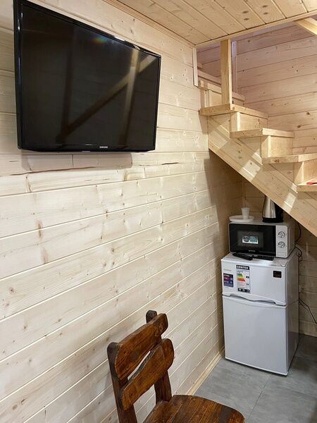 Музыкальный центр с караоке, ТВ, микроволновая печь, холодильник, чайник.