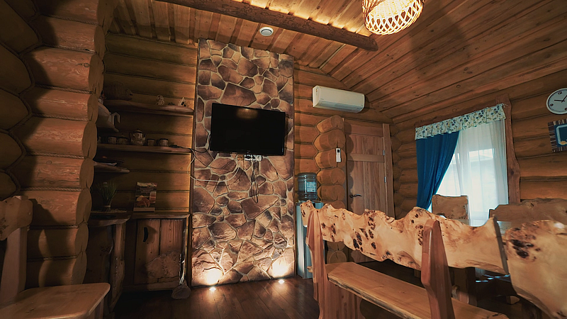Для компании до 8 человек. Гостиная с мягким диваном. Уличный чан «Сказка». Русская парная.