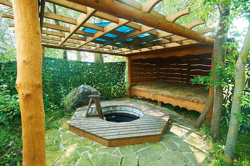 Включает мангал и коптильню. Вмещает до 6 человек. Беседки оборудованы розетками и освещением.