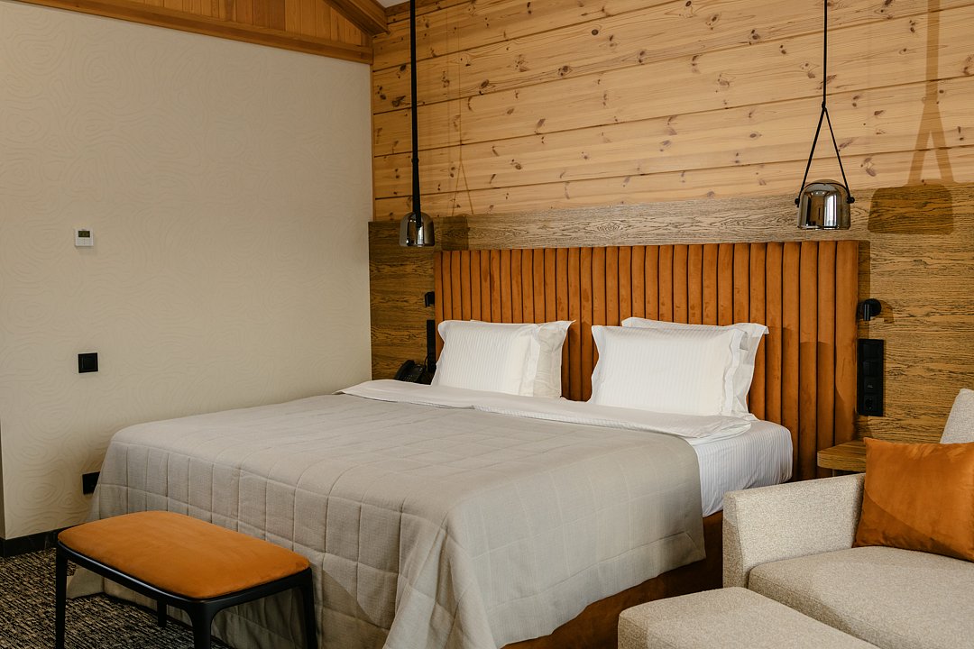 Номера категории «Супериор» в курорте «Алтай Рестарт» — это гармония уюта, пространства и природной эстетики Алтая. Идеальный выбор для гостей, ценящих повышенный комфорт и атмосферу уединённого отдыха.