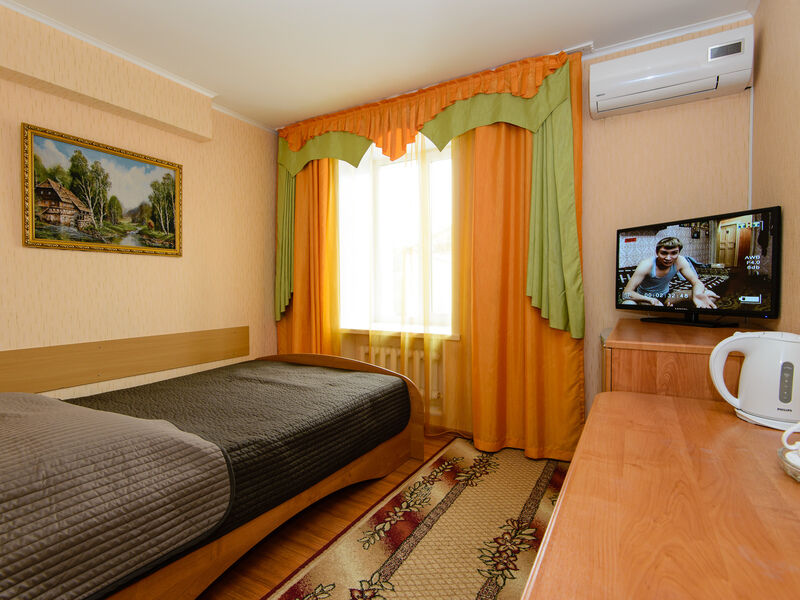 15 кв.м., 1,5-сп. кровать, Х, ТВ, К, шкаф для верхней одежды, стол, прикроватные тумбы, ванная комната с с/у.(Номер №3,14,15)