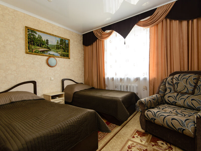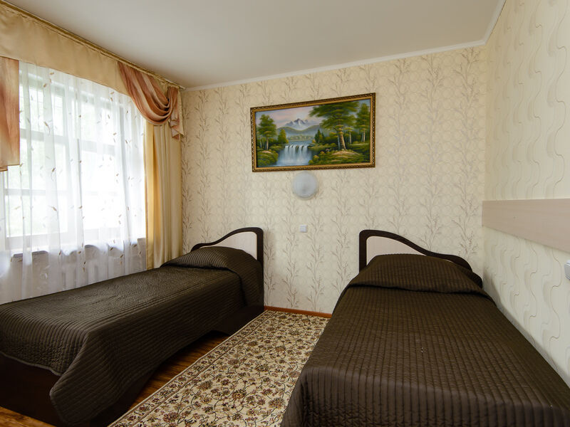 20-22 кв.м, две 1-сп. кровати, Х, ТВ, К, шкаф для верхней одежды, стол, прикроватные тумбы, ванная комната с с/у. (Номер №1,2,4,5,10,11,12,13)