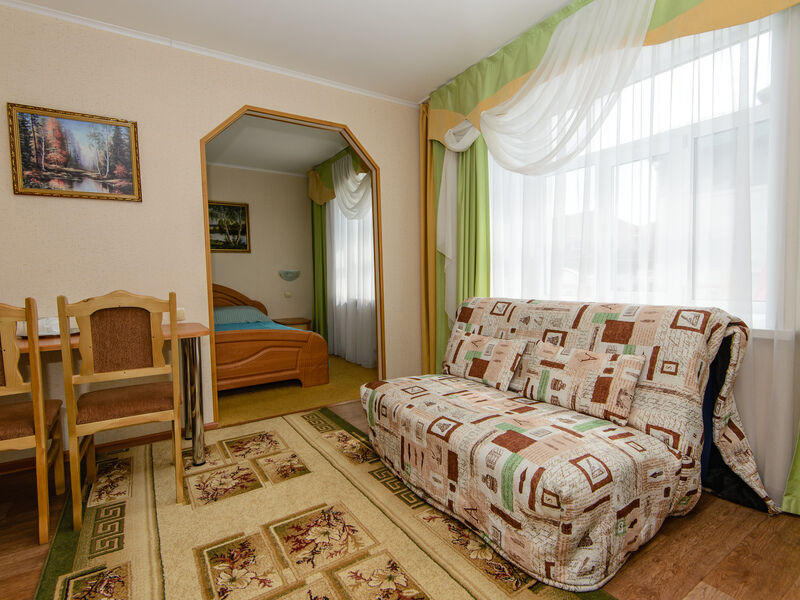 30 кв.м, 2-сп. кровать, диван-трансформер, Х, ТВ, К, шкаф для верхней одежды, стол, прикроватные тумбы, ванная комната с с/у. (номер №16)