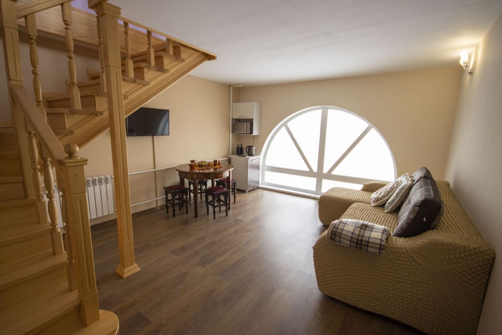 Инфраструктура: зона отдыха, березовые веникиВнутренняя отделка бани и мебель сделаны из сибирского кедра. Жаркая парилка оснащена каменкой, банными аксессуарами, берёзовыми вениками и отваром из горных трав. Сердце бани – специальная печь на дровах, которая поддерживает комфортную температуру в разных помещениях. И, конечно, в распоряжении гостей помывочная и туалет. Стоимость 4000 рублей за 4 часа, продление 500 рублей час.