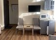 Путешествие в одиночкуОчень уютный отельОтель действительно очень маленький. На ресепшене постоянно никто не сидит. Поэтому выдают сразу два ключа: один - от номера, и второй -от входа в отель. Но персонал внимательный. После того,как я забронировала номер через интернет, мне позвонили из отеля и спросили, когда я приезжаю. Я ответила, во сколько буду в аэропорту Горно-Алтайска, а дальше у меня билет на микроавтобус. Сотрудники отеля прикинули время моего приезда в Белокуриху и к моему приезду меня уже встречали. На дверях отеля вывешен номер мобильного телефона администратора отеля. Номер на втором этаже очень просторный. Двухместная кровать. Удобства в номере. Также есть телевизор, холодильник, микроволновка и посуда. Также в номере есть диван. Все очень чисто и удобно. Номер теплый. Единственный недостаток, что при оплате берут деньги за завтрак, который организован в кафе этого же здания, но открывается только в 10.00