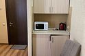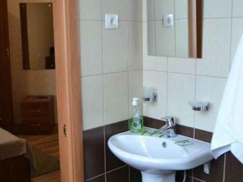 Корпус отеля представляет собой 3-этажный корпус. Номерной фонд представлен 6 номерами 2 категорий комфортности. За счет малого количества номеров, в отеле царит спокойная и уютная атмосфера. Каждый номер оснащен кондиционером, телевизором, холодильником, феном, чайником, имеется Wi-Fi. Позавтракать гости могут в кафе, расположенном на 1 этаже. В меню входит каша, омлет, чай, сок. Лечение каждый желающий может приобрести в любом санатории в виде курсовки.