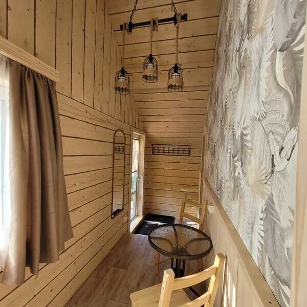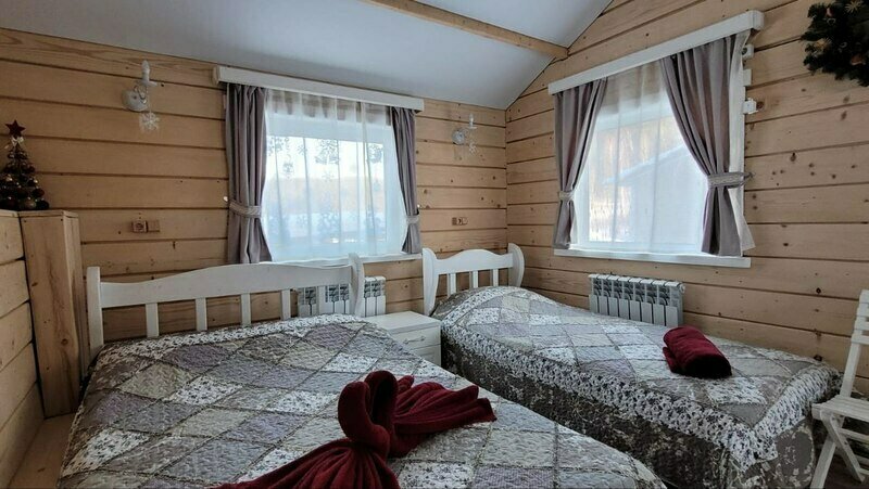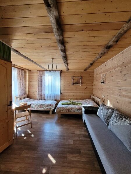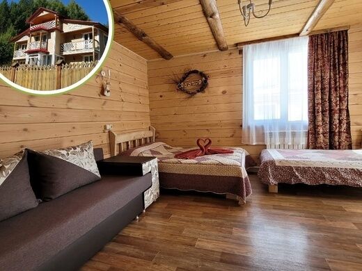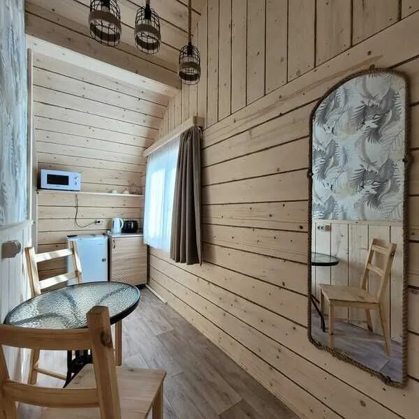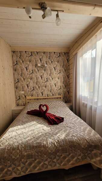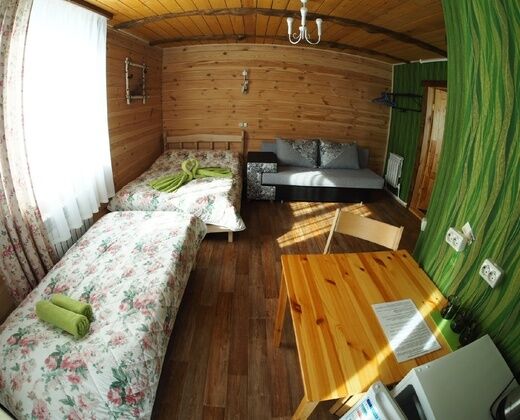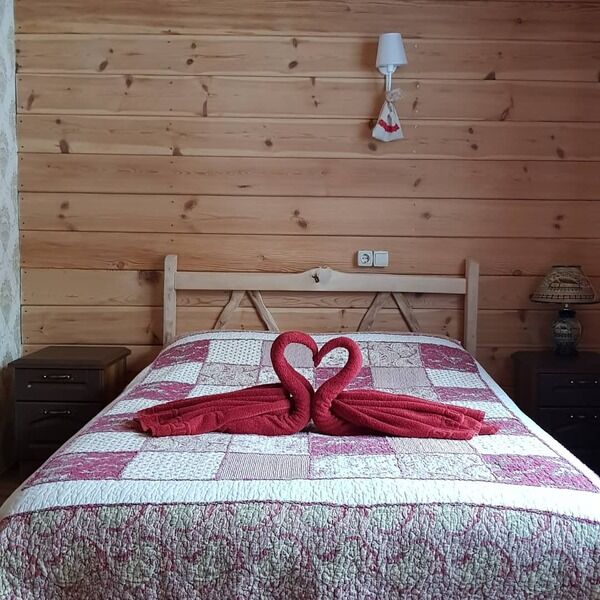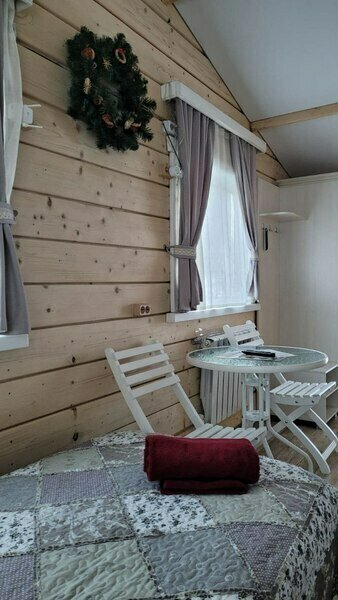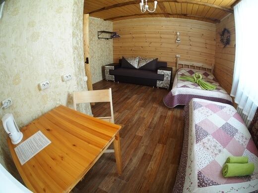 Гостевой дом выполнен в загородном стиле, поэтому все номера имеют уютную атмосферу. Каждая из комнат имеет удобную мебель, а также элементы из дерева в интерьере.