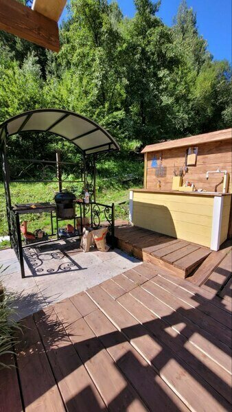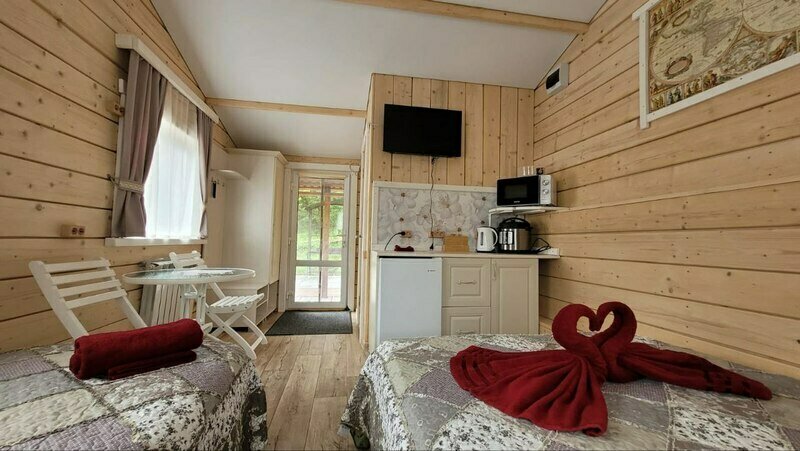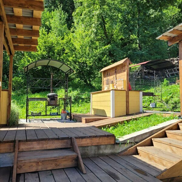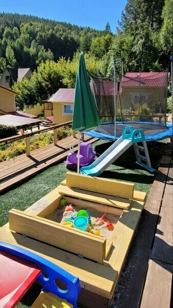 Семейный отдыхДостоинстваСамое лучшее место для отдыха из всех, которые я посещала! Теперь на отдых только сюда! Номера комфортные, везде чистота, на кухне всё есть для приготовления пищи! Территория большая, несколько беседок, мангальные зоны, бассейн с достаточным количеством шезлонгов, батут и песочница для детей, кругом цветы и кустарники, всё кругом благоустроено! Для отдыха есть всё обсалютно! Детям играть места море! Кругом горы, лес, тишина!Хозяева приятные люди, ненавязчивые! Отдохнули с детьми и душой и телом! Идеальное место для отдыха!!! Обязательно сюда вернёмся и однозначно рекомендую другим здесь побывать!