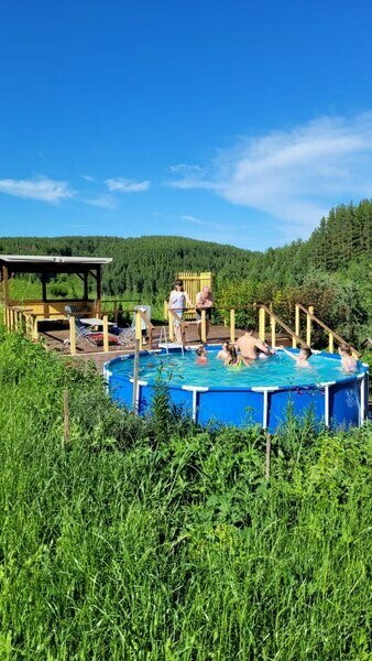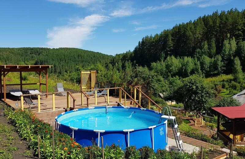 Специально для гостей в летний период на территории работает каркасный бассейн. Здесь и взрослые, и дети смогут освежиться и весело провести время, наслаждаясь приятными водными процедурами.