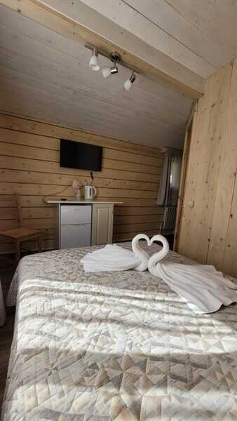 Однокомнатный номер для двух человек с одной двуспальной кроватью. Размещение до 4 человек. Есть возможность двух дополнительных мест (диван - кровать на пружинных блоках).