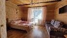 Трехместный номер с одной большой кроватью, одной односпальной кроватью и диваном-кроватью. Delux. Номер находится на 1 этаже гостевого дома. Есть возможность двух дополнительных мест (диван - кровать на пружинных блоках).