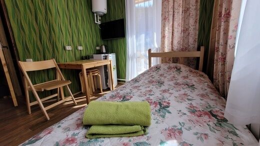 Однокомнатный номер для трех человек с одной двуспальной кроватью, 1 односпальной кроватью, диваном-кроватью на 1 этаже гостевого дома. Есть возможность двух дополнительных мест (диван - кровать на пружинных блоках).