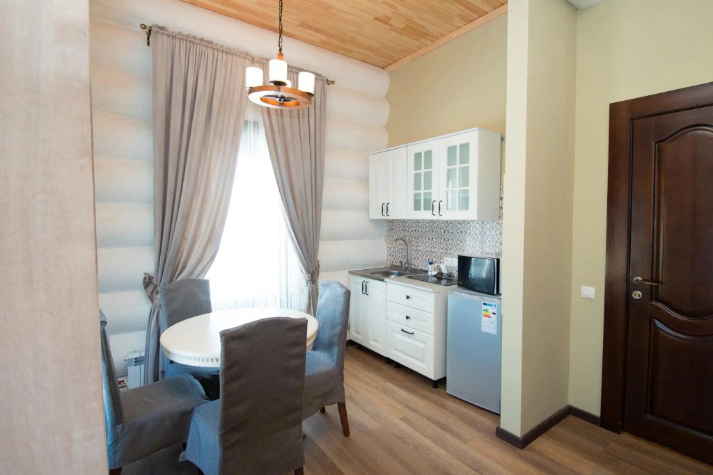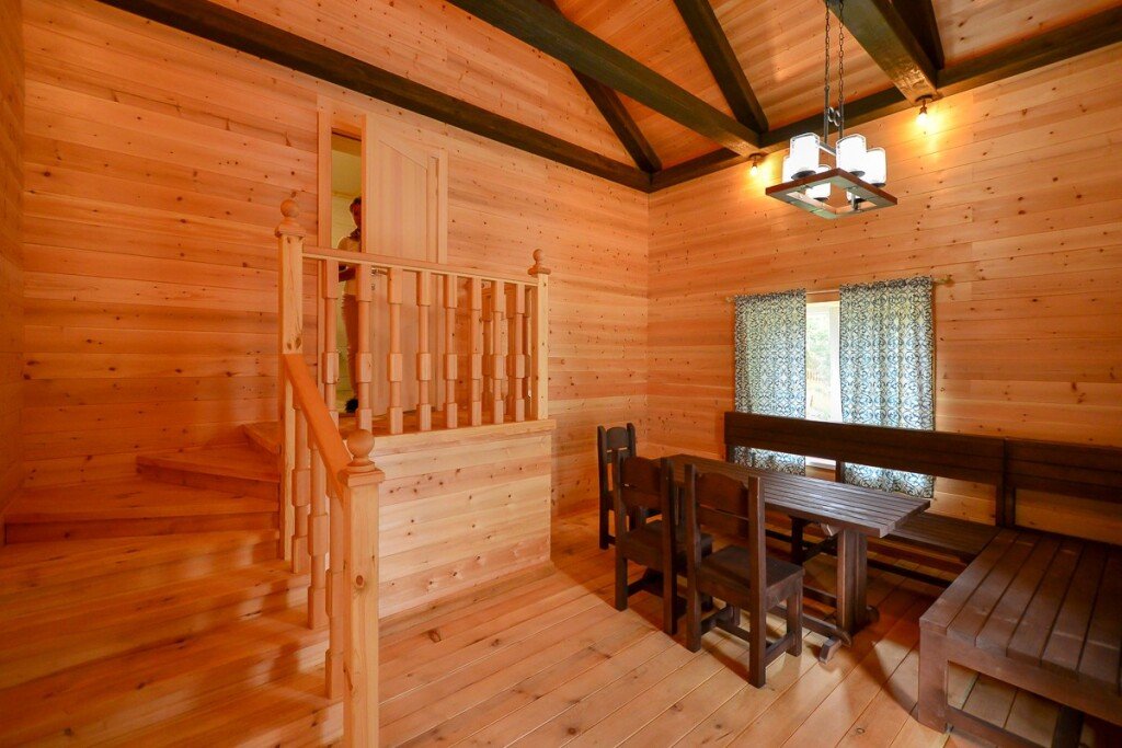 К размещению предлагаются гостевые дома различной комфортабельности, выполненные в стиле «деревенский шик». Дома полностью оборудованы, оснащены кухонными зонами с плитой, микроволновой печью, электрочайником и посудой.