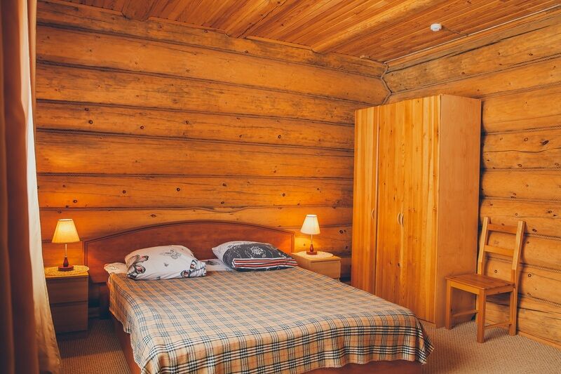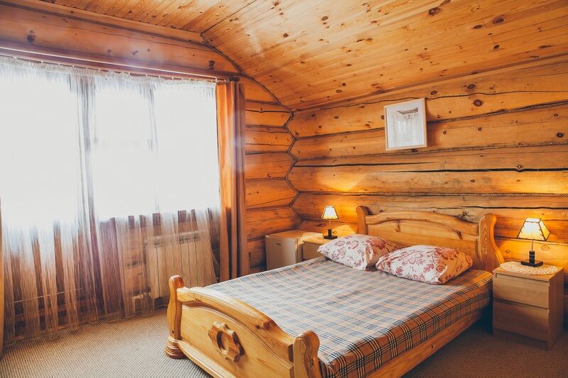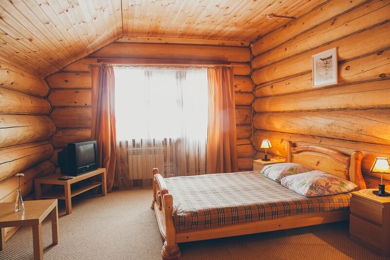 Приехав к нам компанией, Вы можете разместиться в двухэтажном коттедже из кедрового бруса на 5 номеров (вместимостью 13 основных мест). В каждом номере отдельный туалет, душ, телевизор, шкаф, полотенца. На первом этаже два номера (один двухместный и один четырехместный), каминный зал с функционирующим камином, большим столом, телевизором, DVD-караоке, кухонным гарнитуром, плитой, микроволновой печью, холодильником, чайником и всей необходимой посудой. На втором этаже три номера (два двухместные и один трехместный). Номера есть как с балконом, так и без него.