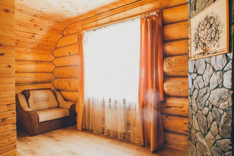 На первом этаже два номера (один двухместный и один четырехместный), каминный зал с функционирующим камином, большим столом, телевизором, DVD-караоке, кухонным гарнитуром, плитой, микроволновой печью, холодильником, чайником и всей необходимой посудой. На втором этаже три номера (два двухместные и один трехместный). Номера есть как с балконом, так и без него.