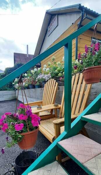 На улице, с обеих сторон окружённой хвойным лесом, находится гостевой дом «На здоровье», где можно отдохнуть в уютных домиках, наслаждаясь свежим воздухом и красивым видом.