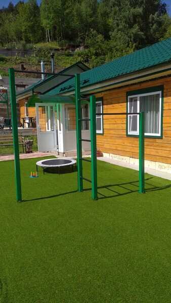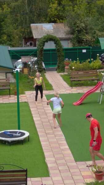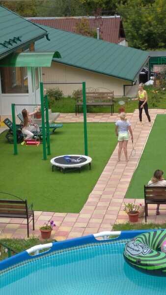 На территории есть мангал для приготовления шашлыков, бесплатная парковка, находящаяся под видеонаблюдением, детская площадка и специальные зоны с искусственным газоном для занятия йогой и зарядки.