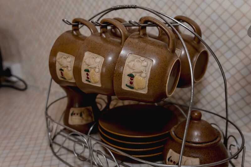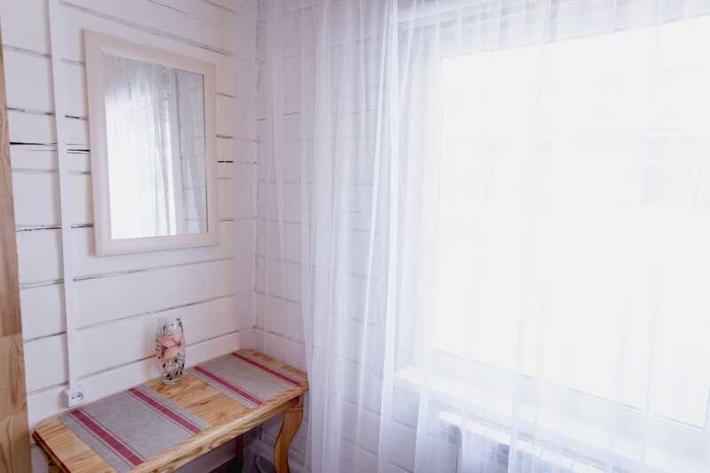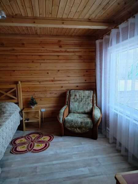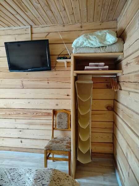Отдельно стоит сказать о комнате отдыха. Просторная, светлая, уютная. Добротная мебель из натурального дерева подчеркивает экологичность. Для комфортного времяпровождения есть телевизор, кухонные принадлежности, чайник, посуда.