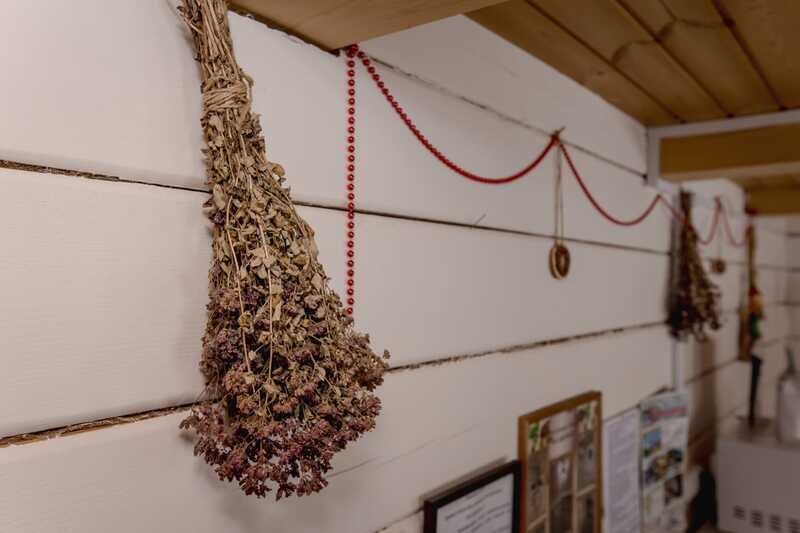 Включены чай из горных алтайских трав, мёд, простыни, шапочки. Веник берёзовый или дубовый.
