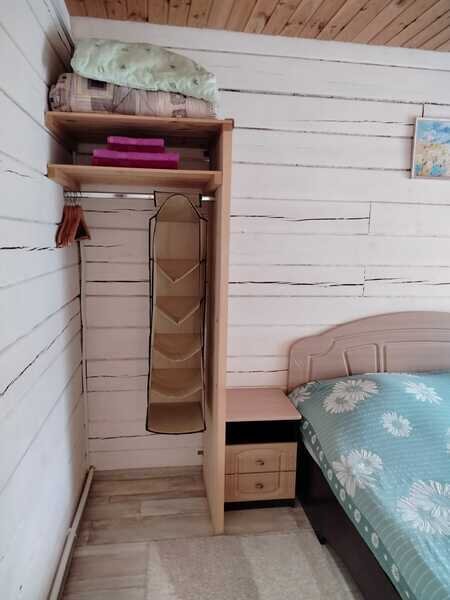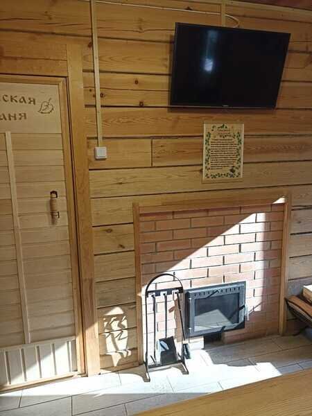 Инфраструктура: простыни, шапочки, обливное ведроБаня построена из соснового бруса, отделана осиновой вагоночкой. Свежий запах дерева!