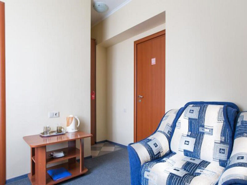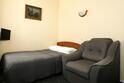 12,4 кв.м, 1,5 спальная кровать, кресло-кровать, Х,ТВ, шкаф, журн.столик, чайник, посуда, фен, с/у, туалет.принадлежности