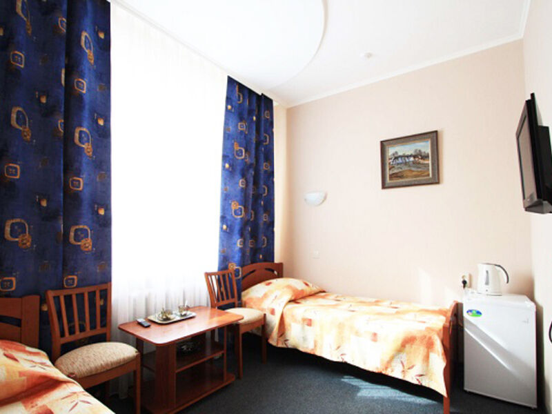 17 кв.м, две односпальные кровати, раскладушка, Х,ТВ, шкаф, журн.столик, чайник, посуда, фен, с/у, туалет.принадлежности