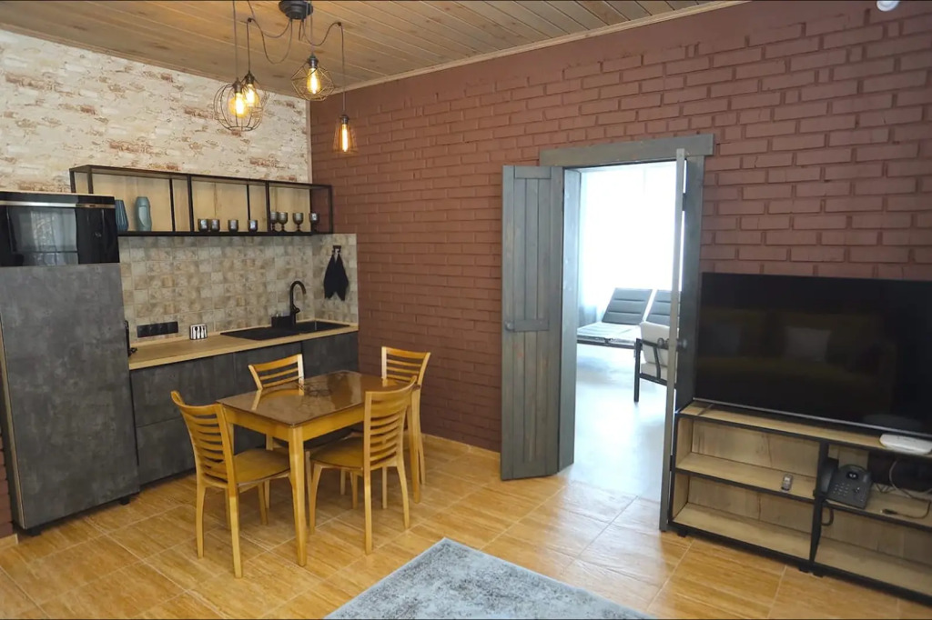 В номере вас будут ждать телевизор и халат. Оснащение зависит от выбранной категории номера.