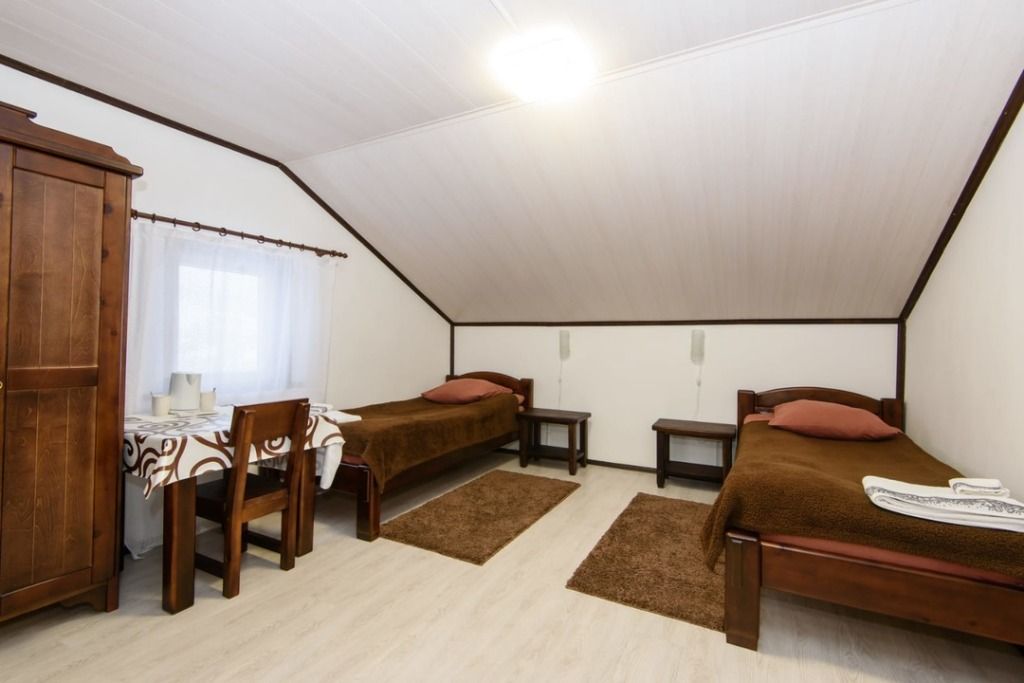 Номер категории «МАНСАРДА благоустроенный 2-местный номер.» — Находится на 3-ем мансардном этаже (скошен потолок). В номере: две односпальные кровати с возможностью сдвижения, шкаф, прикроватные тумбы,стаканы для воды, журнальный стол, телевизор, набор полотенец, принадлежности для душа, санузел с душем. Микроволновка и холодильник - 1 на 4 номера (в коридоре).