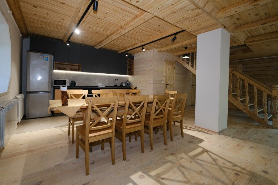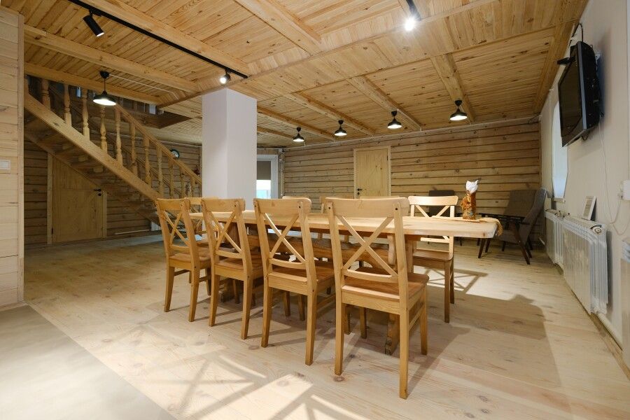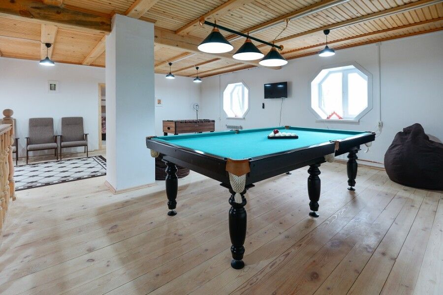 На втором этаже две трех-четырехместные спальни, зона отдыха с бильярдным столом, душ, туалет. Возможна аренда всего дома.