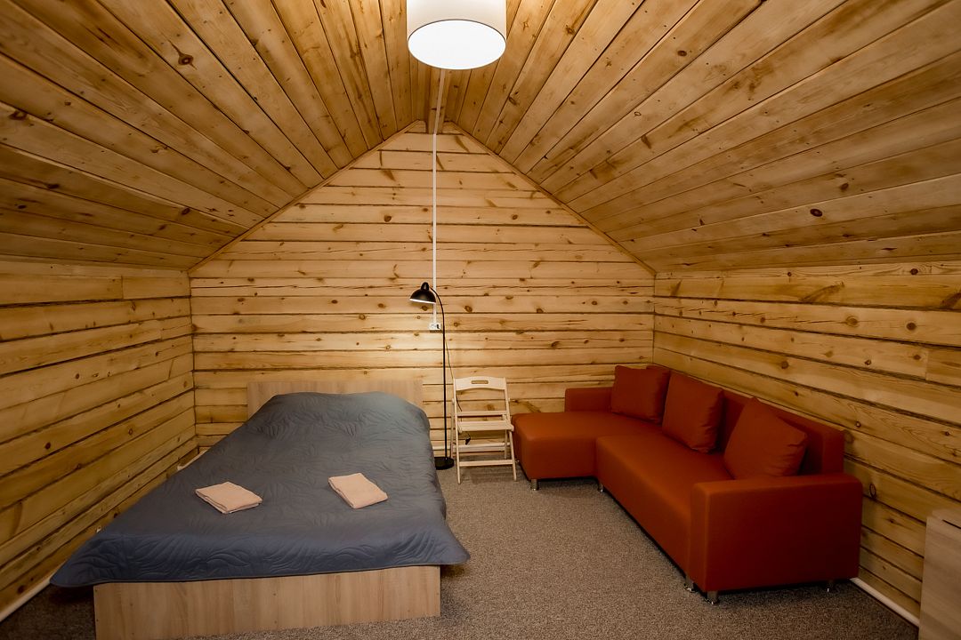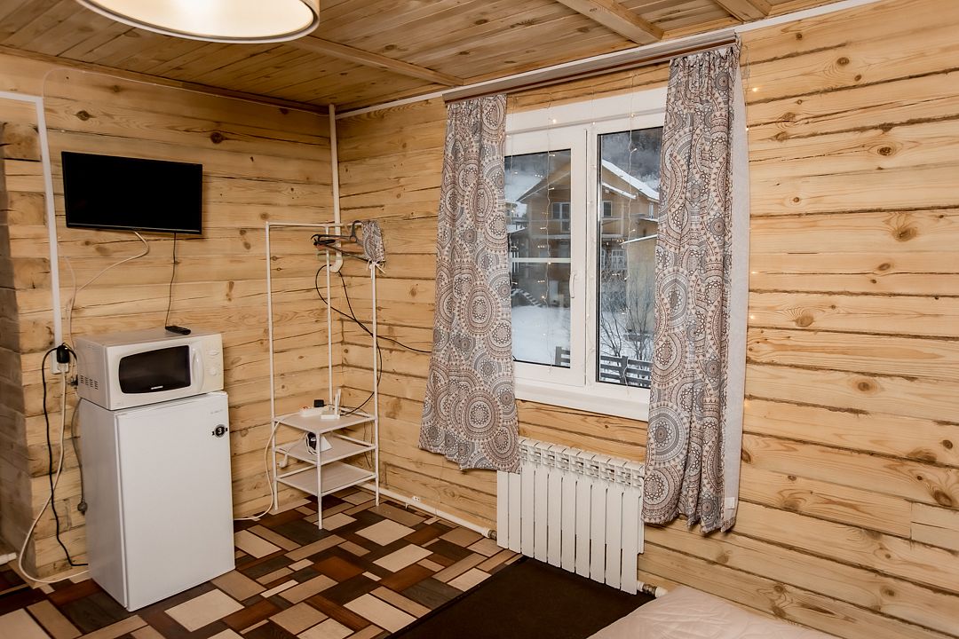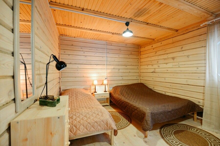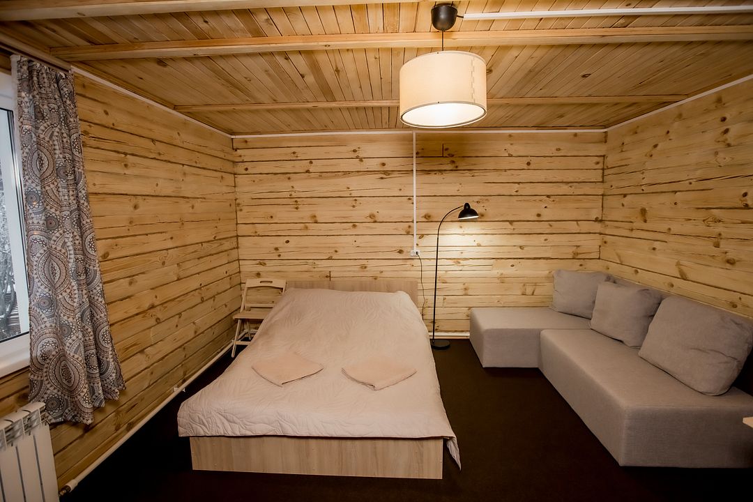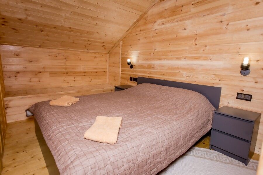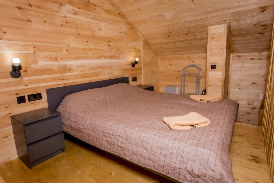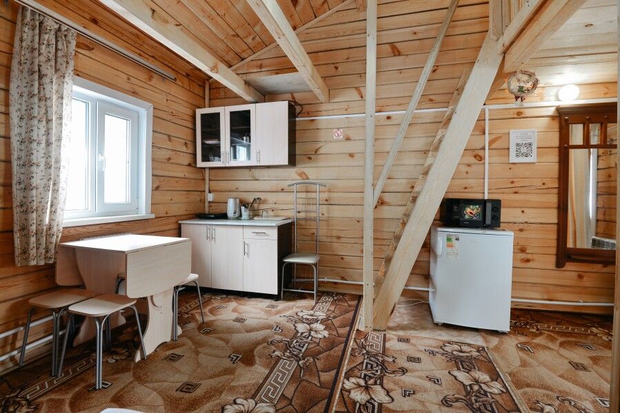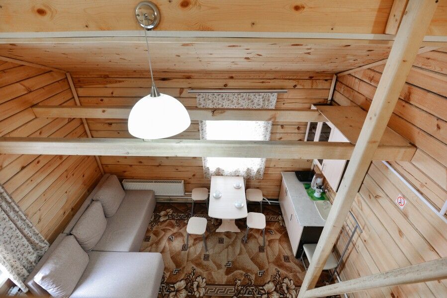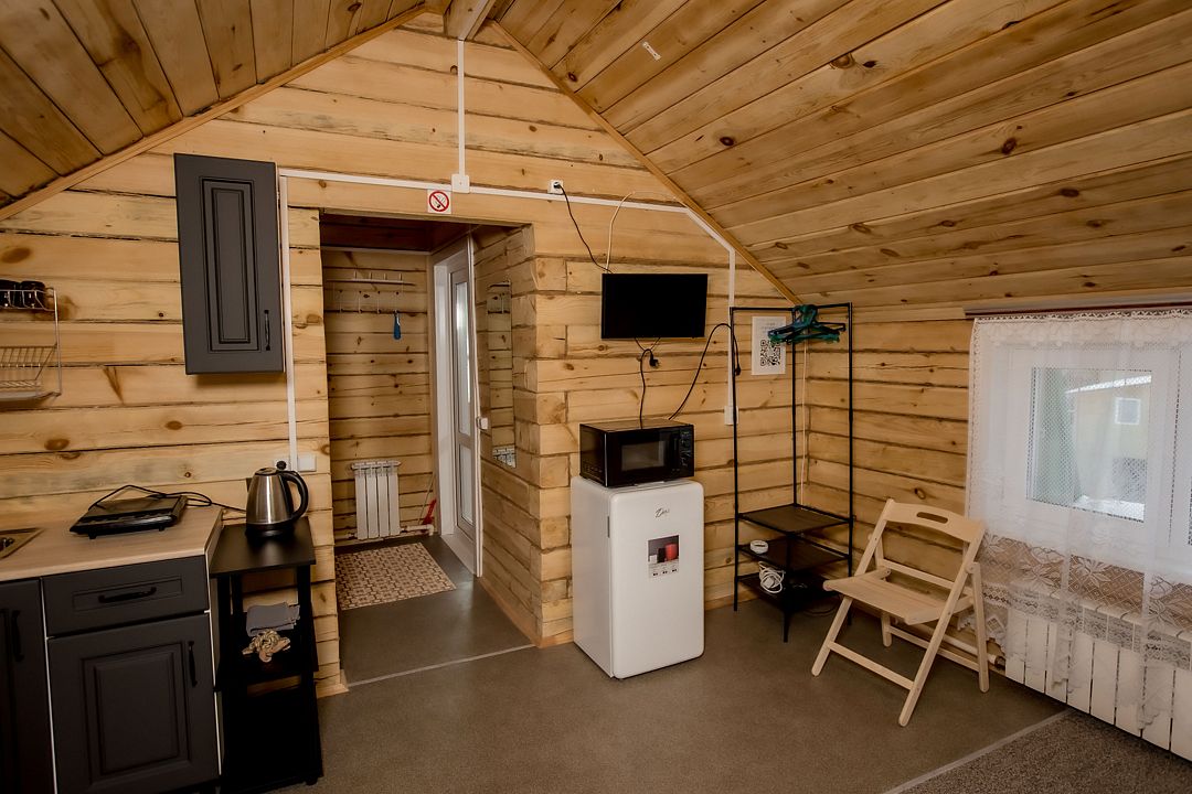 В распоряжении отдыхающих деревянные, полностью благоустроенные дома и автостоянка на территории. Возле каждого домика есть небольшая беседка с мангалом и столом.