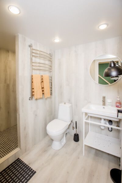 2 санузла (один: душевая + туалет + стиральная машина; второй: туалет)