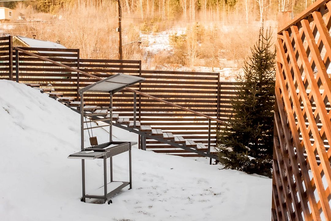 Возле каждого домика — небольшая беседка с мангалом и столом.