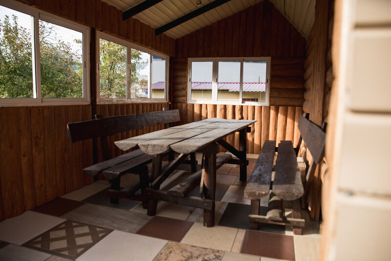 На общей придомовой территории оборудована крытая беседка с мангальной зоной для шашлыков и барбекю. Работает русская баня, ее посещение предоставляется в качестве дополнительной услуги. Для транспорта постояльцев предоставляется парковочное место на территории.