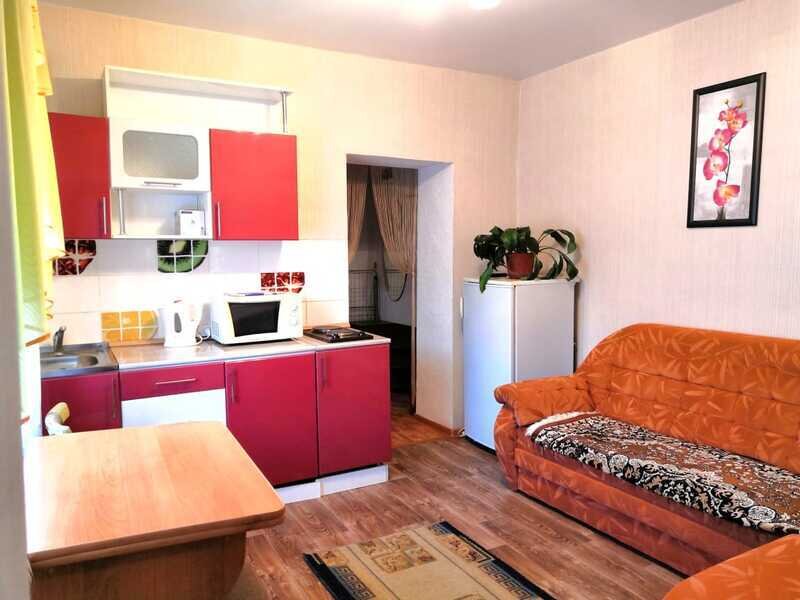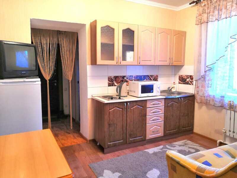 Гостевой дом стоит в квартале малоэтажной застройки и представляет собой благоустроенный дом на 2 номера, с отдельным входом каждый. В каждом номере оборудована кухня, где предусмотрена электрическая плита, микроволновая печь, холодильник, посуда и столовые приборы, обеденная зона и зона отдыха с раскладывающимся диваном.