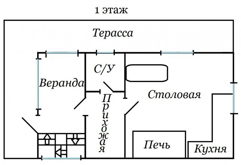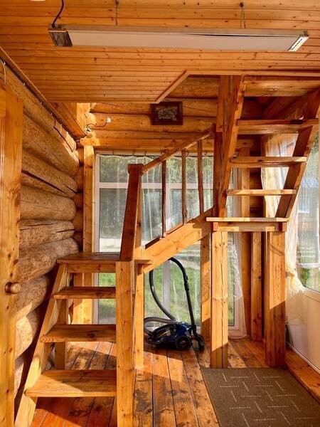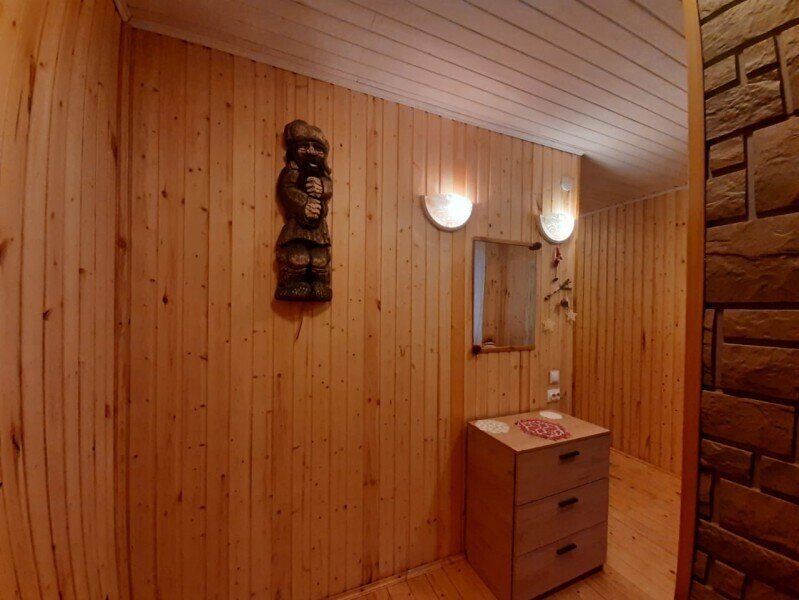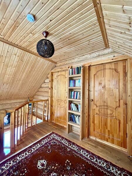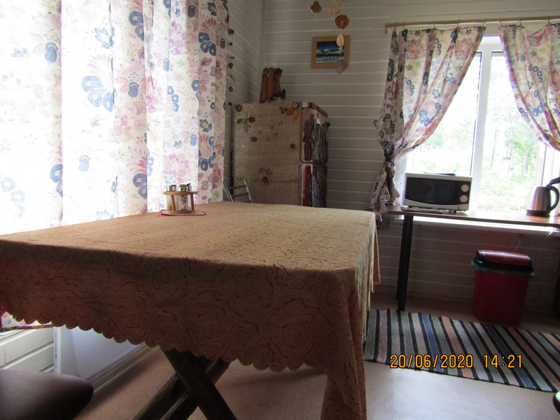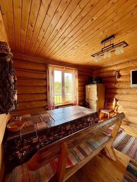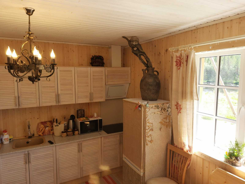 На первом этаже расположена кухня, наполненная теплым Карельским уютом со всеми удобствами, русская печь. В доме есть санузел и прочие коммуникации.