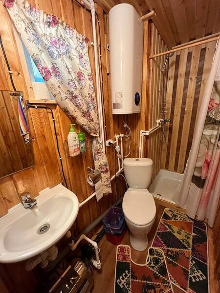 В доме имеется туалетная комната с душевой кабинкой. На просторной территории расположена баня.