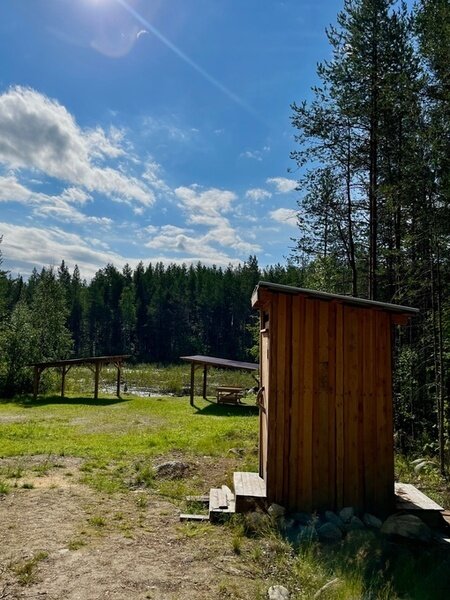 Живописное место под палатку с видом на реку. Есть уличный туалет.