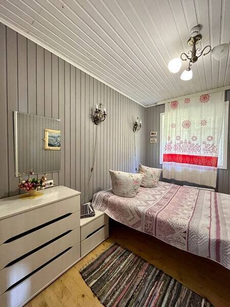 Деревенский комфортный дом с двумя уютными спальнями и оборудованной кухонной зоной.