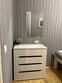 Ванная комната: душевая кабина, водонагреватель, туалет, раковина, зеркало.
