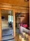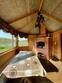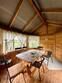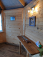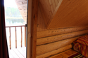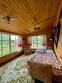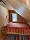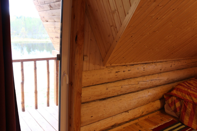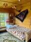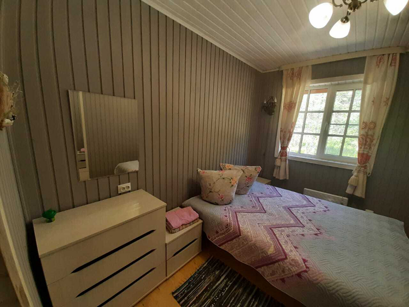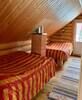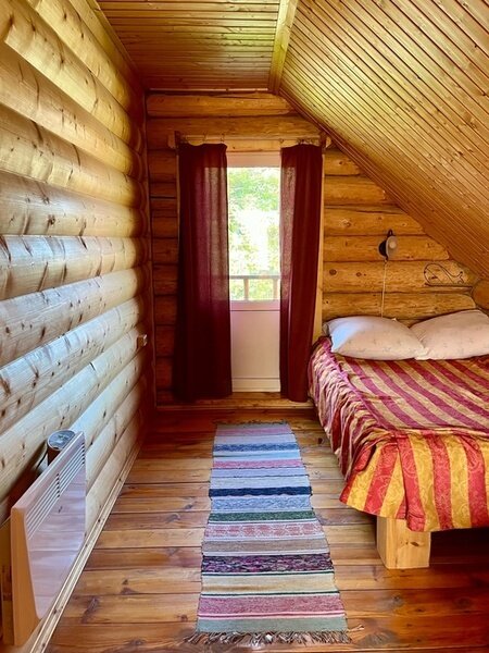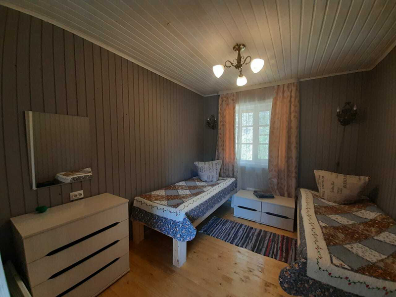 На втором этаже имеется небольшой холл и две спальни. В одной комнате две двуспальные кровати и балкон с видом на лесную тропу, во второй двуспальная кровать евро размера, балкон с видом на речку.