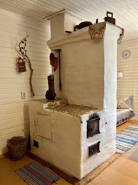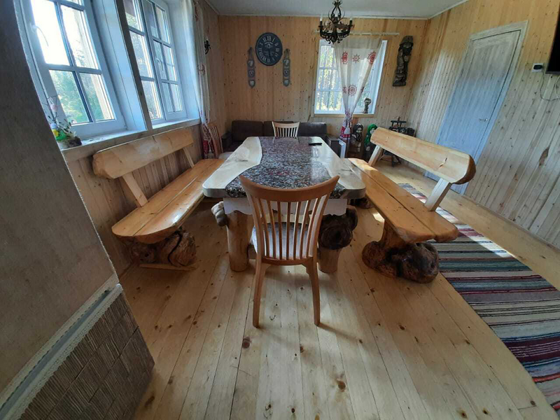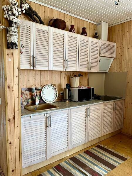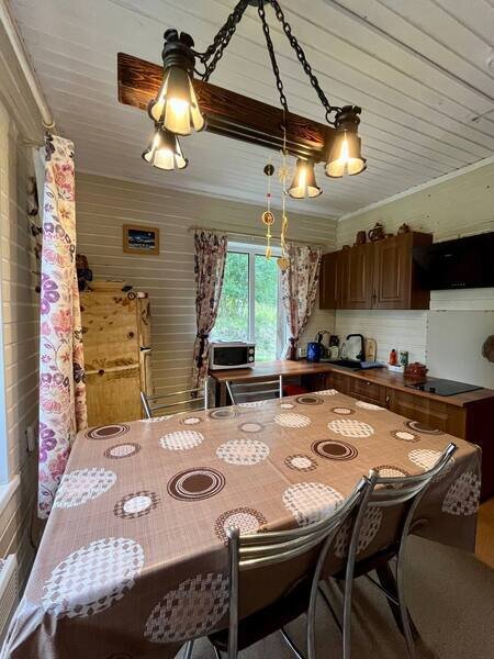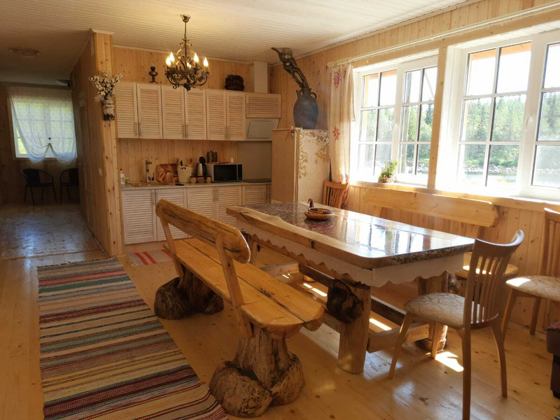 На первом этаже расположена кухня, наполненная теплым Карельским уютом со всеми удобствами, русская печь.