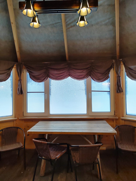 Неподалеку от базы, всего в 8 км, есть небольшое уютное кафе «Соблазн». Можно заказать еду, напитки и пироги.