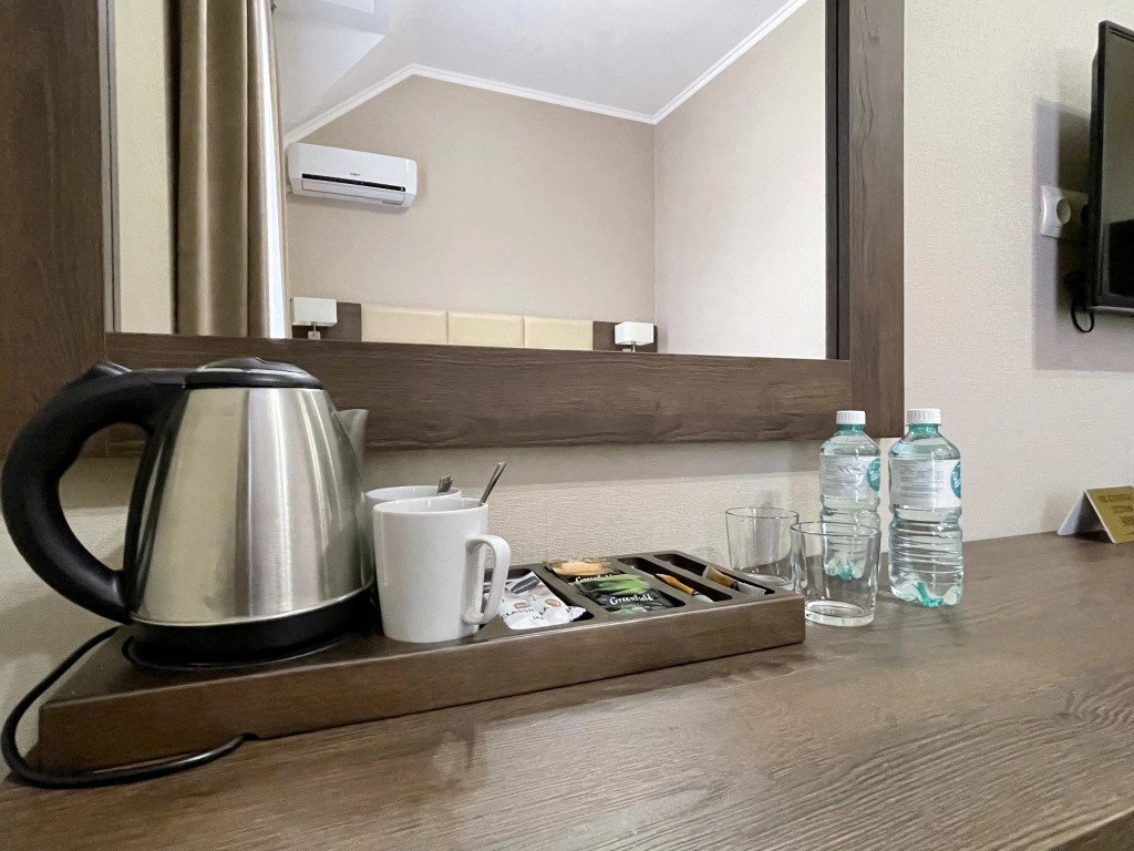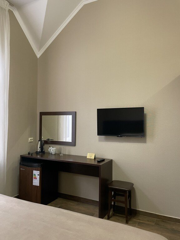 В номере гостей ждут телевизор и халат. Оснащение зависит от выбранной категории номера.