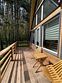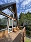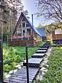 Тихий, спокойный отдых в двухэтажном A-frame доме, вместимостью до 6 человек. Витражные окна и терраса с видом на лес .